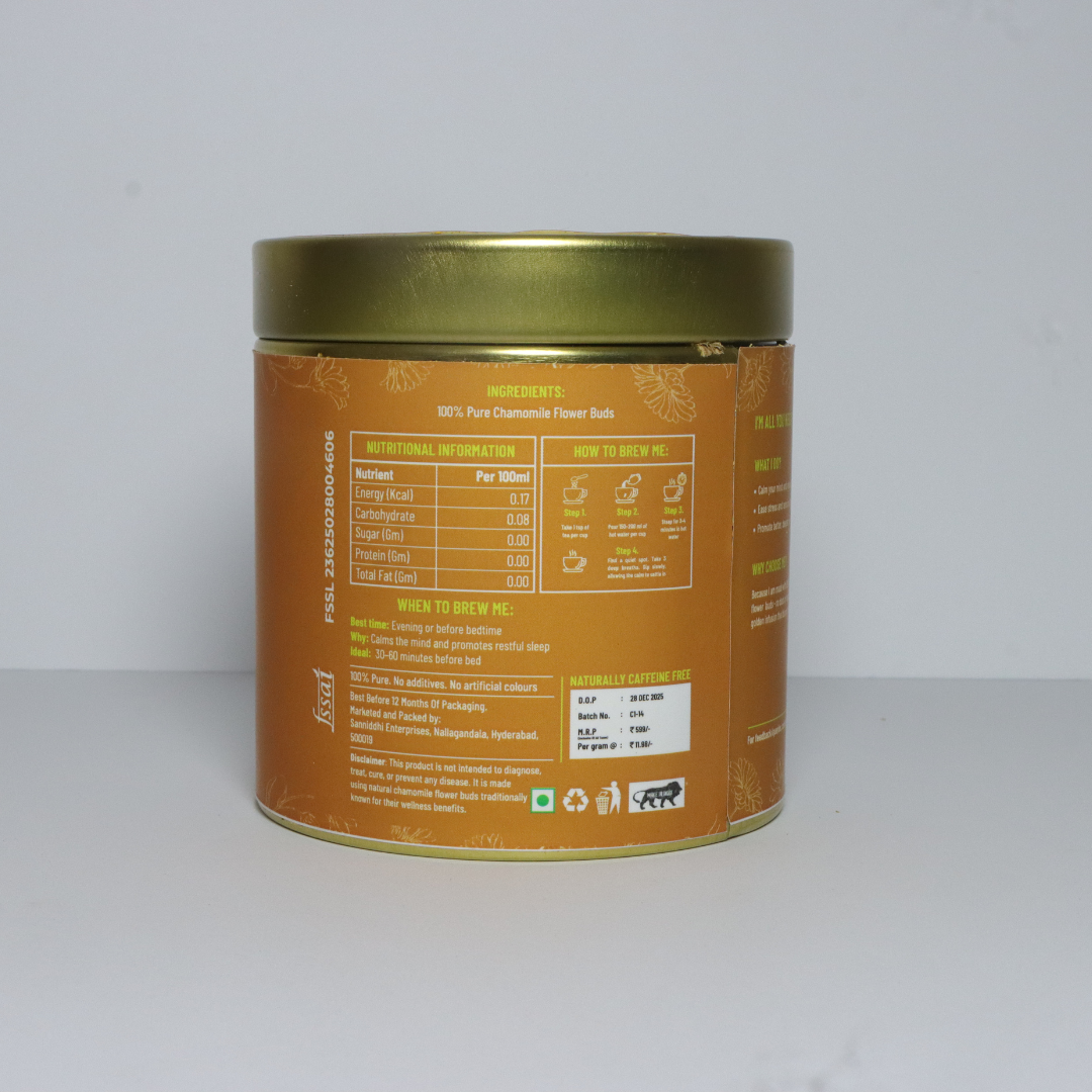 Because I am made with 100% pure chamomile flower buds – no dust or fannings – giving you pure, golden infusion that bloom beautifully in every cup